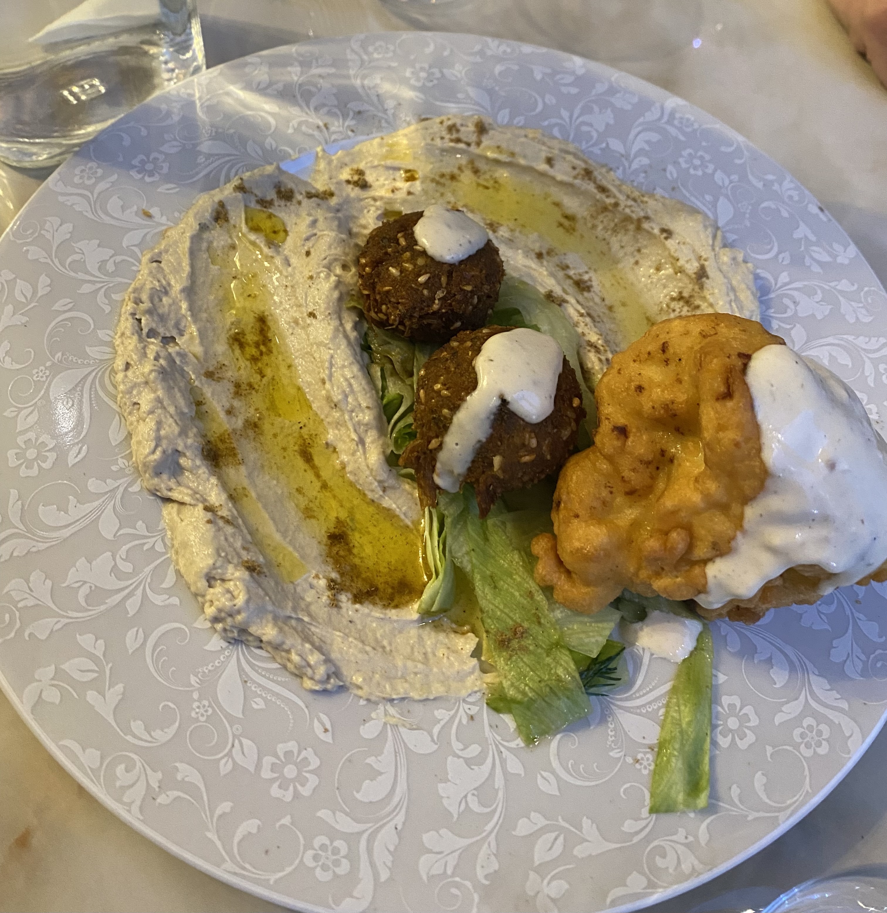 Mais quelle déception! Je pense que ce restaurant qui se situait à une autre adresse avant a dû changer de propriétaire mais en tout cas nous avons été hyper déçu. Les plats n’étaient pas mauvais mais sans plus. Nous avons pris la formule avec entrée et tajine (je pensais être émerveillé) et on nous sert un minuscule petit bol de hommos et mon minuscule bol de tajine avec 3 pauvres falafels. Et le tout pour 25€ par personne. On s’est goinfré de pain pour ne pas avoir faim vu les quantités servies. Le restaurant n’est pas beau ni accueillant, on dirait plus un lieu où tu prends rapidement ton snack à emporter. Le resto était vide, j’aurais dû annuler ma réservation. Je ne comprends pas les avis positifs. Et le patron qui prépare la nourriture ne se lave pas les mains après s’être mouché.
