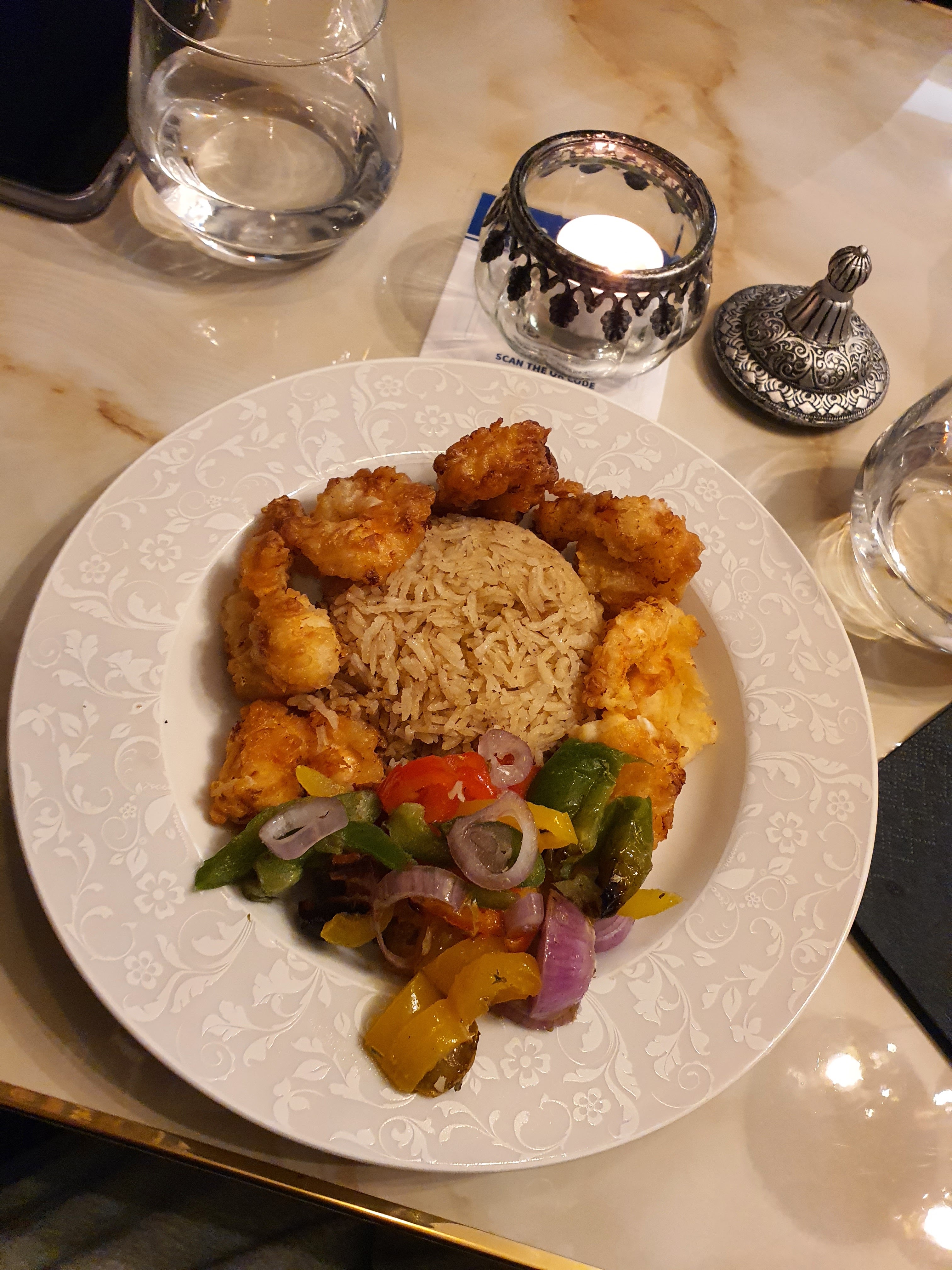 Ce restaurant utilise des photos d’un autre restaurant et qui ne correspondent pas du tout au cadre ni aux plats proposés La nourriture correspond à un bon fast food sans plus. Ci-joint une photo de l’entrée.